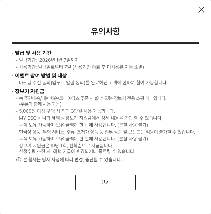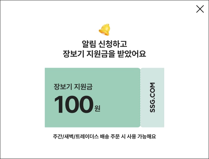 앱푸시 수신 동의하고, 랜덤 장보기 지원금 받기