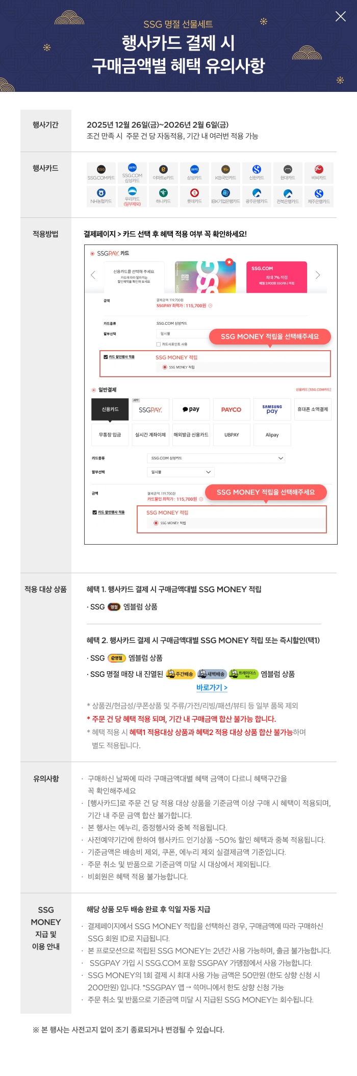 대상카드 및 유의사항을 확인해주세요