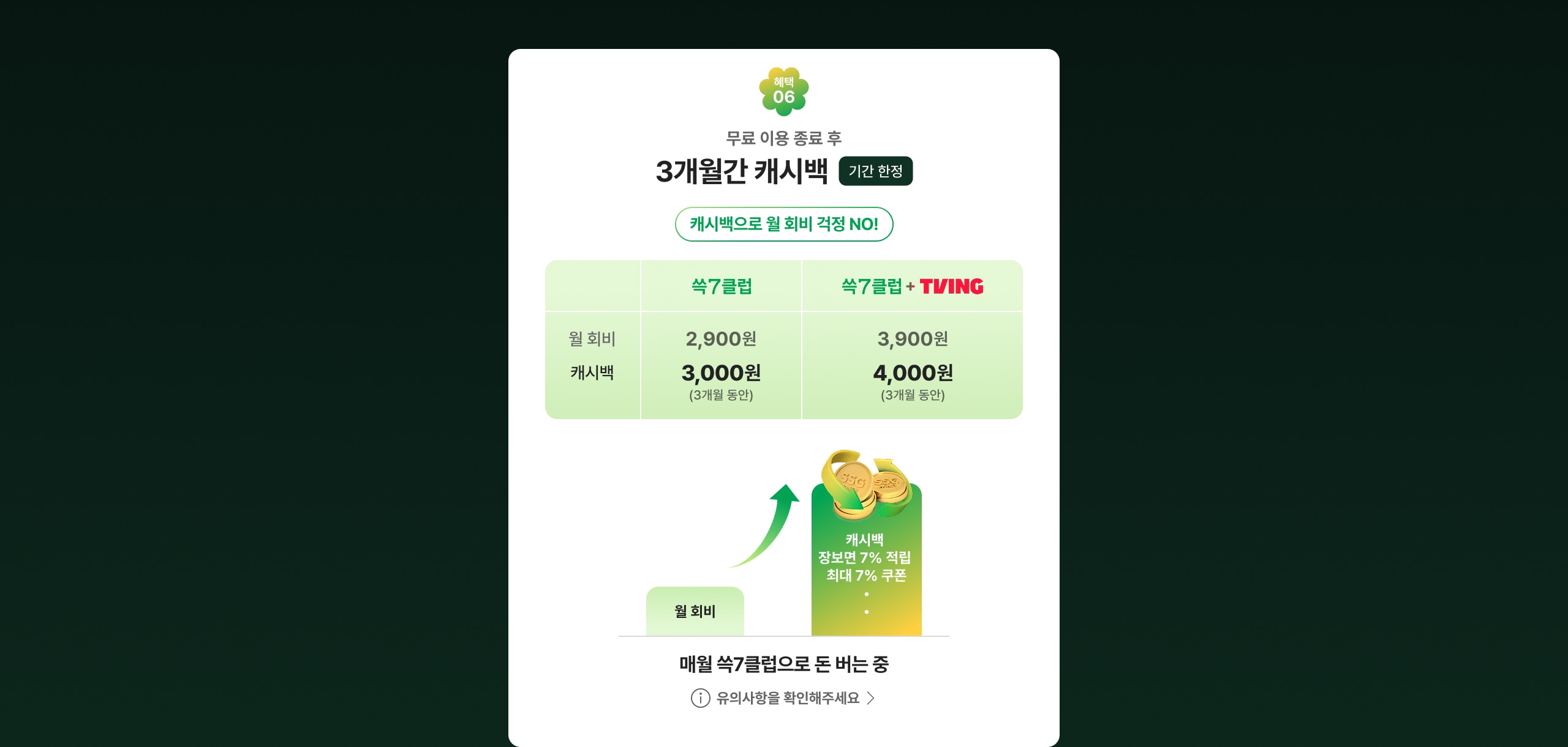06 무료 이용 종료 후 3개월 3천원 캐시백 혜택 바로가기