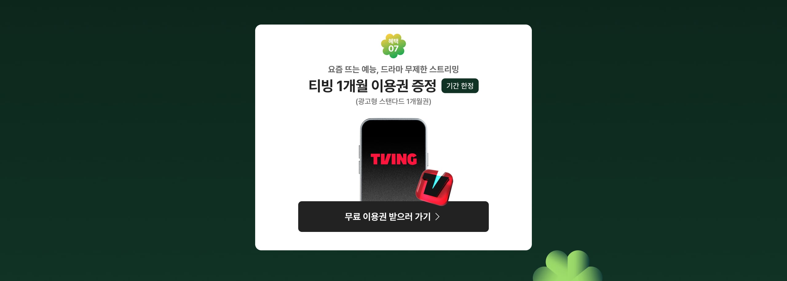 07 예능부터 드라마까지 티빙 1개월 이용권 혜택 바로가기