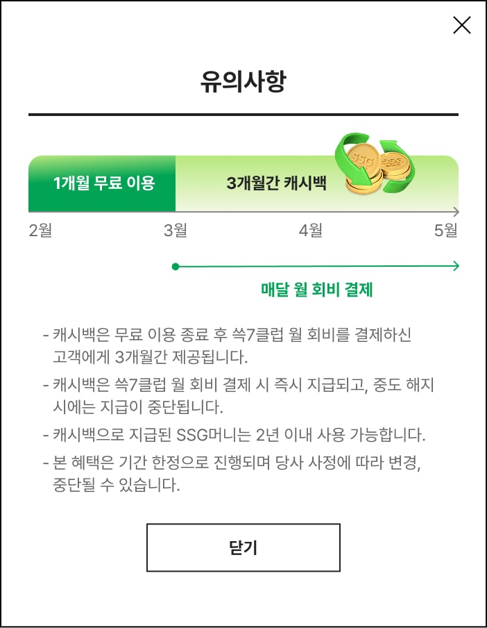 월 회비 결제 동의하고 쓱7클럽 혜택 계속 받기